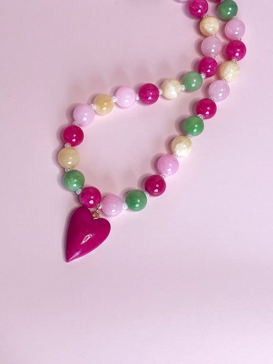 Flerfarget jadekjede med anheng