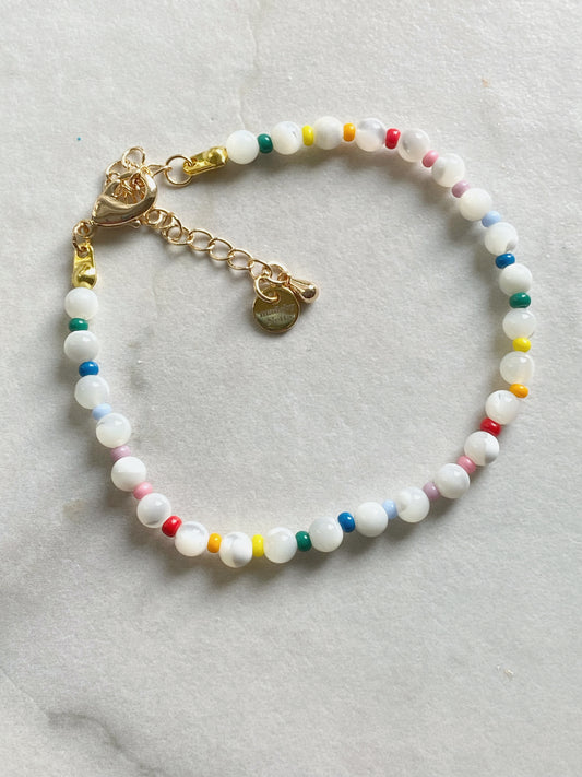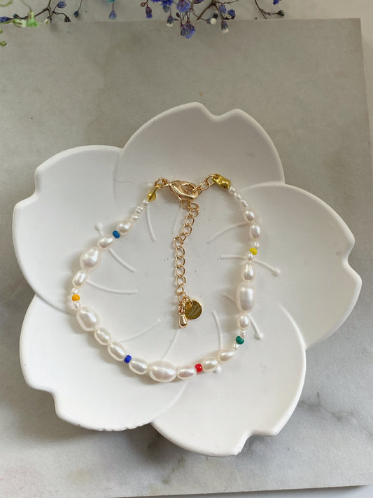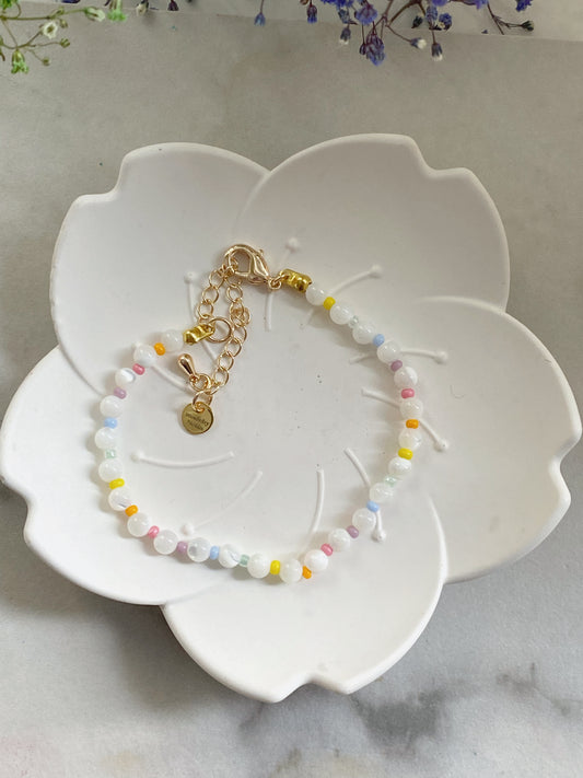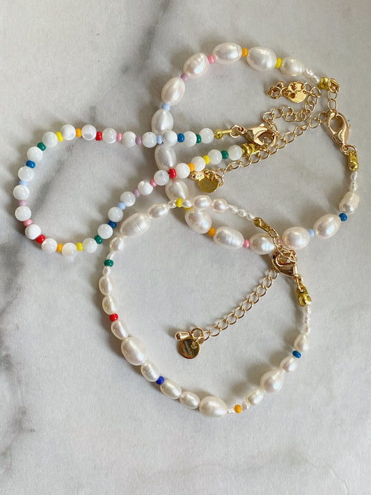 Perlemorsperler med pastellregnbue