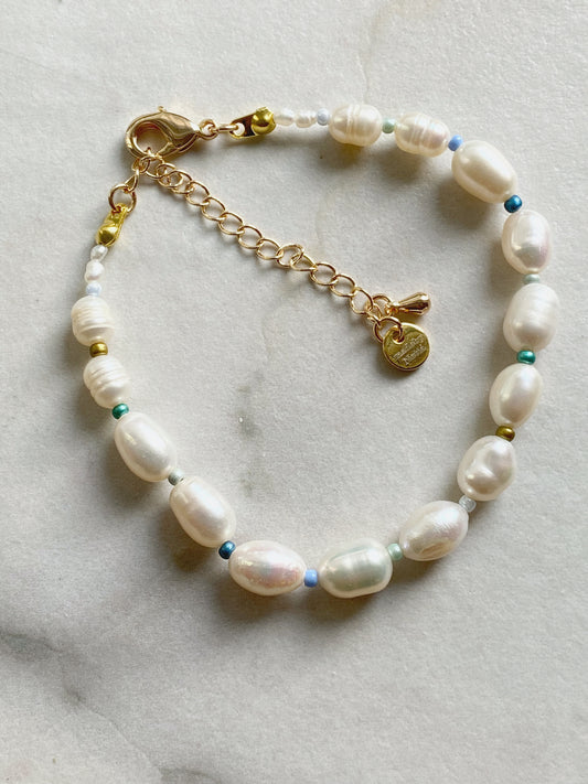 Ferskvannsperler med blå og grønne perler